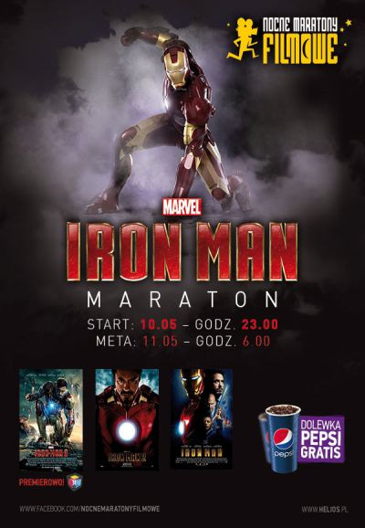 Już w najbliższy piątek 10.05 nie lada okazja dla miłośników kina akcji i zapierających dech w piersiach efektów specjalnych! Tczewskie kino Helios zaprasza na nocny Maraton Filmowy z "Iron Manem". Poza pierwszymi dwiema częściami przygód Tony’ego Starka premierowo obejrzymy również film "Iron Man 3" i to w formacie 3D!